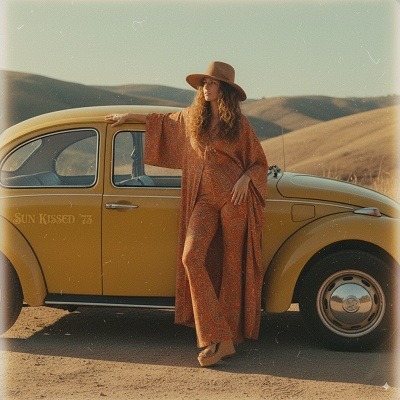 "Enhance the uploaded photo with retro vintage vibes, classic 70s outfit, faded warm tones, film grain texture for a nostalgic style."