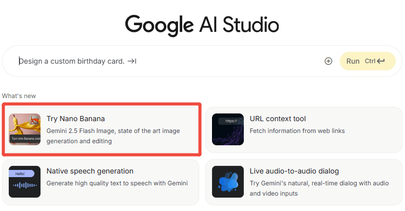 सबसे पहले Google AI Studio ओपन करें और वहाँ से NanoBanana विकल्प चुनें।