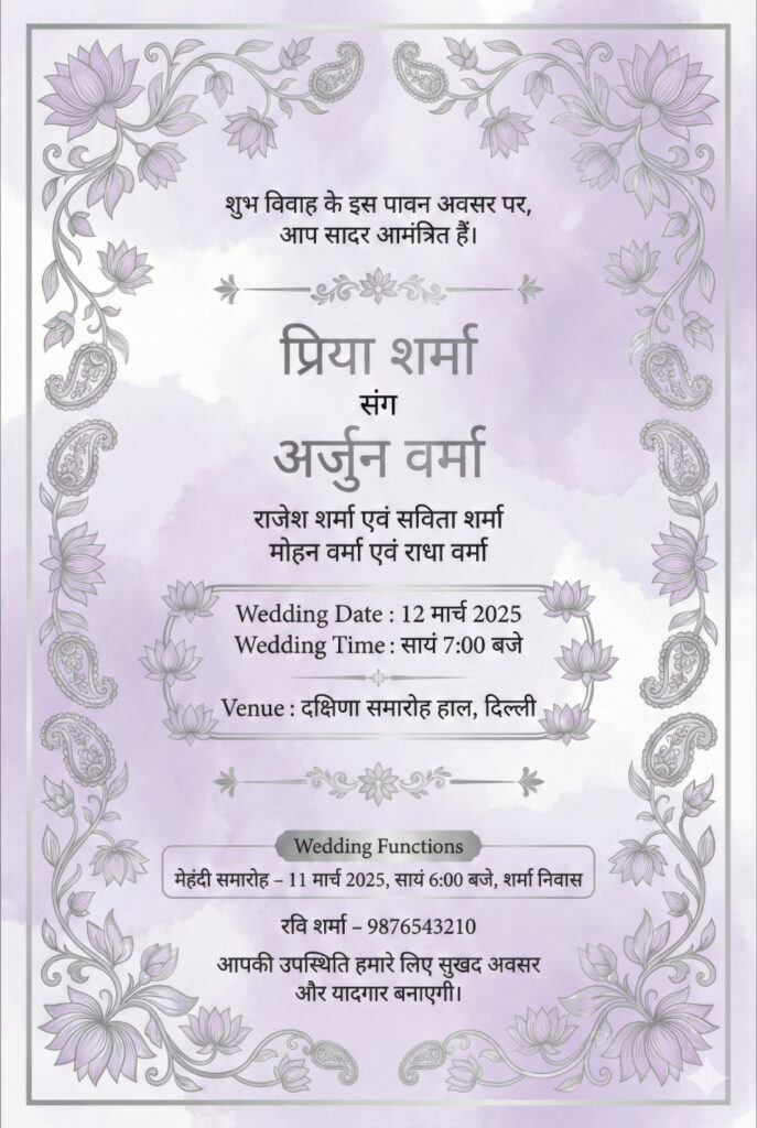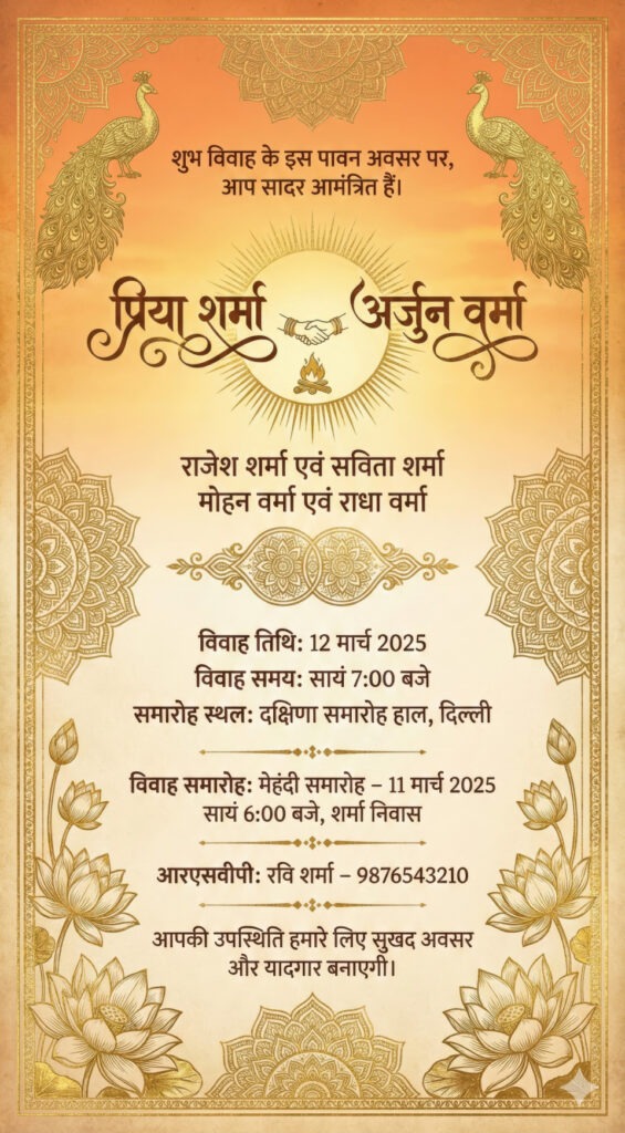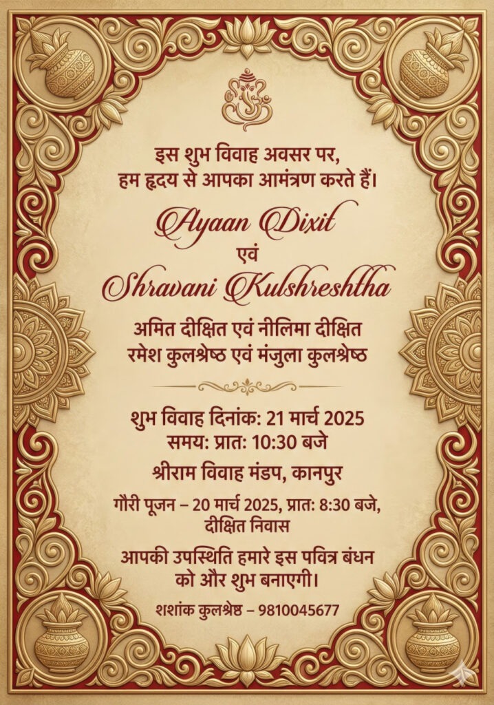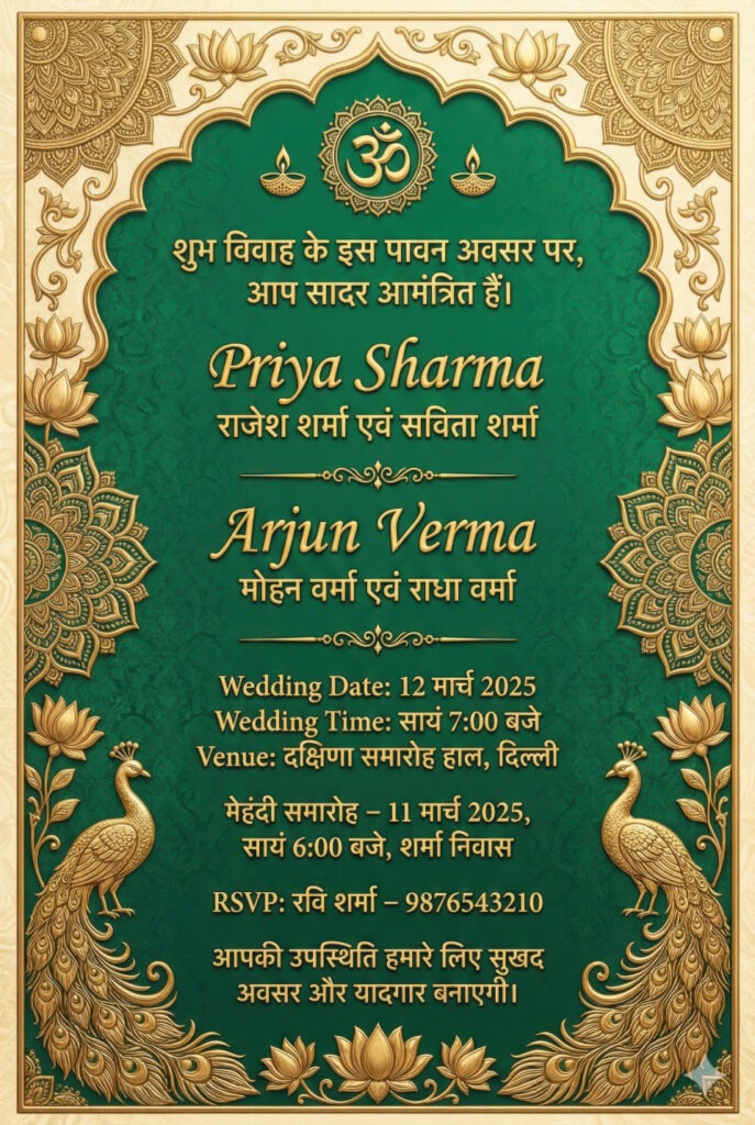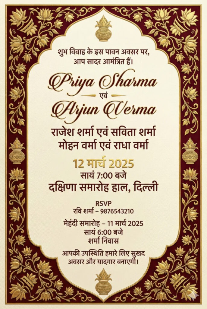 Google Gemini Prompts for Indian Hindi Wedding Invitation Card
