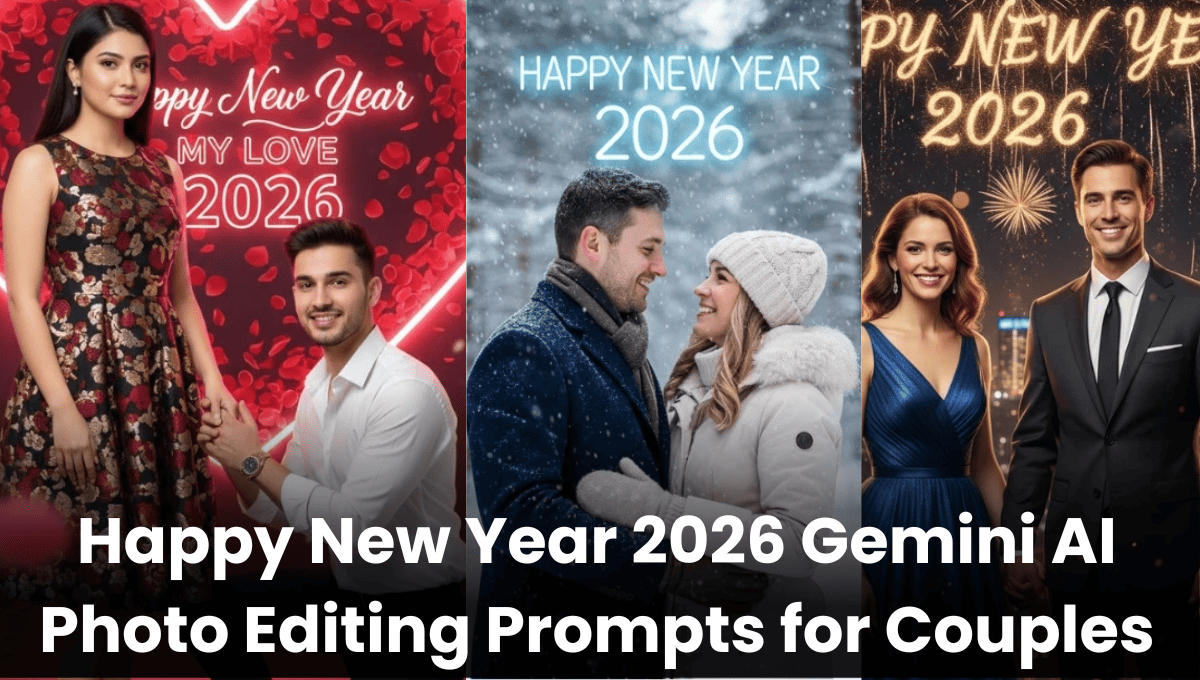 Happy New Year 2026 Gemini AI Photo Editing Prompts for Couples:नया साल सिर्फ तारीख बदलने का नाम नहीं होता, बल्कि यह यादों को और भी खास बनाने का मौका होता है। अगर आप चाहते हैं कि आपकी कपल फोटो भीड़ से अलग दिखे, तो Gemini AI फोटो एडिटिंग प्रॉम्प्ट्स आपकी मदद कर सकते हैं।