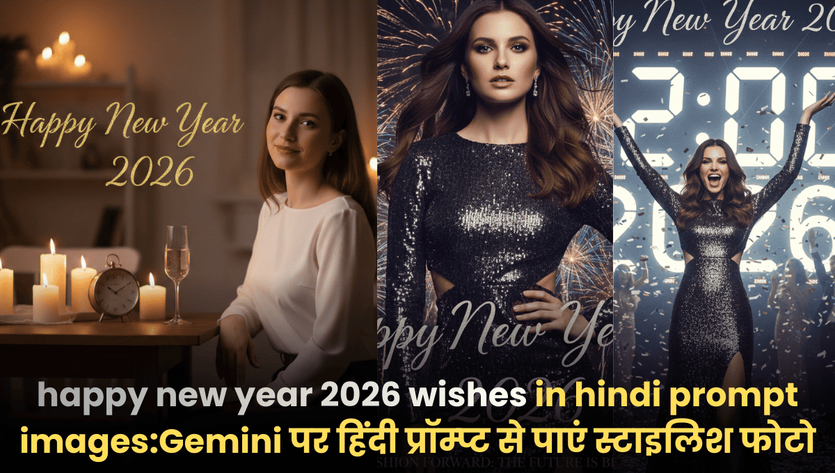 इसी वजह से इस लेख में हम आपको कुछ खास और ट्रेंडिंग AI प्रॉम्प्ट्स के बारे में बताने वाले हैं। इन प्रॉम्प्ट्स की मदद से आप अलग-अलग पोज़ और स्टाइल में न्यू ईयर की खूबसूरत और शानदार तस्वीरें आसानी से क्रिएट कर सकते हैं।