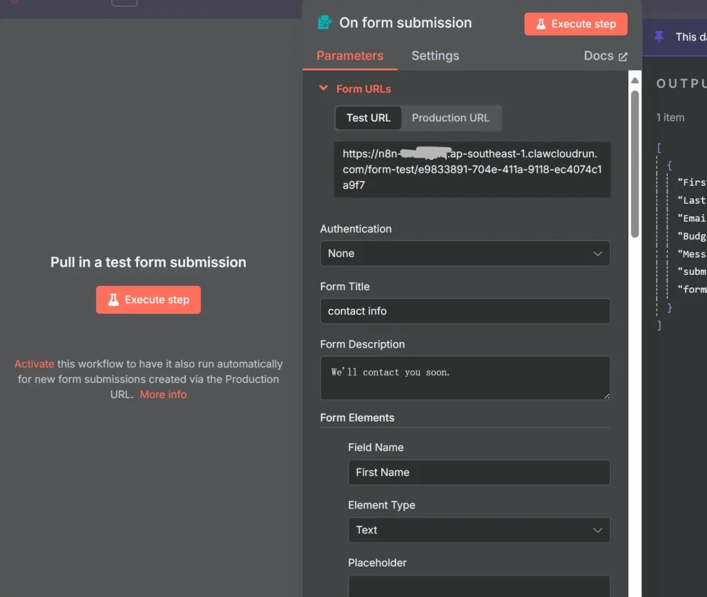 फॉर्म ट्रिगर नोड एक साझा करने योग्य वेबपेज बनाता है जिसमें आप अपनी जरूरत के अनुसार कस्टम फॉर्म तैयार कर सकते हैं। जब कोई उपयोगकर्ता यह फॉर्म भरकर सबमिट करता है, तो ट्रिगर तुरंत आपका वर्कफ़्लो सक्रिय कर देता है और सबमिट किए गए डेटा को वर्कफ़्लो के इनपुट के रूप में पास कर देता है।