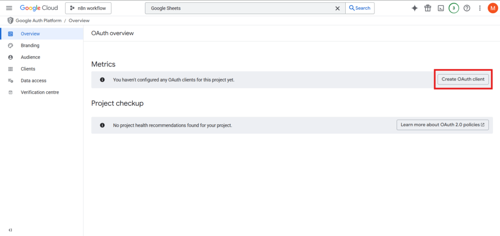- स्क्रीन पर दिखाई देने वाले “Create OAuth client” विकल्प पर क्लिक करें।