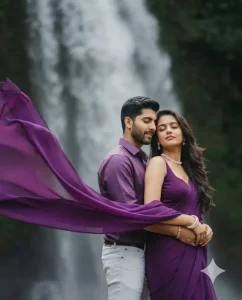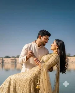 परिणाम आपको बिल्कुल प्रोफेशनल फोटोशूट जैसा लगेगा—सिनेमैटिक लाइटिंग, सुंदर बैकग्राउंड और रोमांटिक माहौल के साथ।